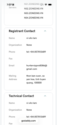 I did a reverse lookup on the domain that the Scammer is using. You can do this by doing any kind of who is search on google. I just typed “who owns this domain” into google and used godaddy’s.